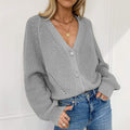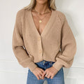 Damkofta – Oversized passform – Grovstickad – V-ringning – Knäppning – Ribbstickade kanter