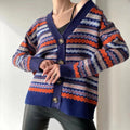 Damkofta – Relaxed Passform – Stickad – V-Ringning – Knäppning – Grafiskt Mönster