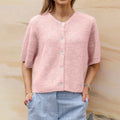 Dam Kofta – Ull Stickad – Korta Ärmar – Croppad Passform – Knappar Fram Casual