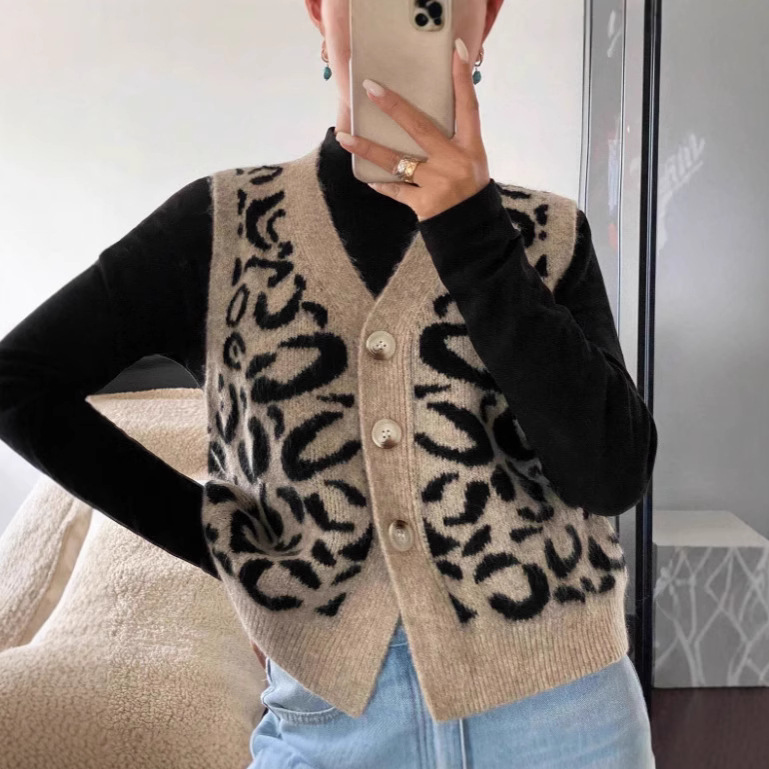 Damkofta – Ullstickad – V-Hals – Knäppning – Kort Modell – Avslappnad Passform