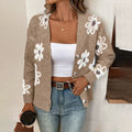 Dam Kofta – Ull Stickad – Avslappnad Passform – Blommigjacquard – Långa Ärmar – Knäppning