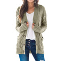 Damkofta – Ullmixstickning – Avslappnad passform – Kabelmönster – Mellanlång med knappar och fickor