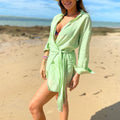 Damer Bomull-linne Omlottklänning - Mini. Omfamna en enkel stil med denna Amstel-Mode mini-omlottklänning. Denna klänning är tillverkad av en andningsbar bomull-linneblandning, har långa ärmar, en V-ringning med krage och en smickrande omlottsdesign och är perfekt för avslappnad chic.