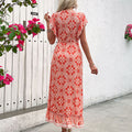 Dam Omslagsklänning – Lätt Bomullsblandning – V-Ringning – Midi Längd – Volangärmar