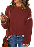 Damtröja – Lös Passform – Stickat Kabelmönster – Rund Hals Lång Ärm