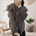 Damkofta – Oversized Passform – Mjukstickad – Öppen Framsida – Fransig Avslutning