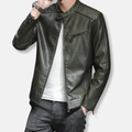 Herr Bikerjacka – Slim Fit – Glänsande Läderlook – Fickor med Dragkedja – Casual Stil