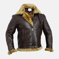 Herr bomberjacka – Oversized passform – Shearlingfoder – Läderfinish – Spännekrage