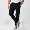 Deze herenbroek is vervaardigd uit een gladde katoenmix en heeft een relaxte taps toelopende pasvorm. Voorzien van een trekkoord in de taille, cargozakken en elastische boorden aan de enkels.