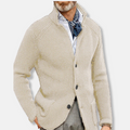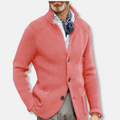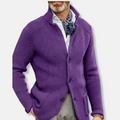 Deze heren cardigan, vervaardigd uit een wolmix met een gestructureerde brei, biedt een slanke pasvorm en is voorzien van een opstaande kraag. Een veelzijdig kledingstuk voor diverse gelegenheden.