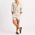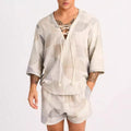 Ontdek de Heren Casual Set – Relaxed Fit – Ademende Stoffen – Lace-Up Shirt en Shorts van Amstel-Mode. Deze comfortabele, lichte en ademende herenset is perfect voor ontspannen dagen. Geniet van de ultieme casual stijl met dit trendy lace-up shirt en de comfortabele shorts, ideaal voor zomerse gelegenheden.