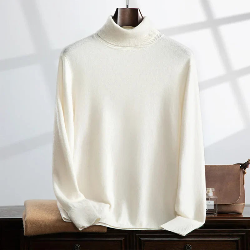 Heren Coltrui – 100% Kasjmier – Relaxed Fit – Ribgebreide Zachte Trui. Ervaar ultiem comfort met deze zachte, ribgebreide coltrui voor heren. De relaxed fit en luxueuze wolblend maken dit de perfecte trui voor de koudere dagen. Een tijdloze toevoeging aan je garderobe!