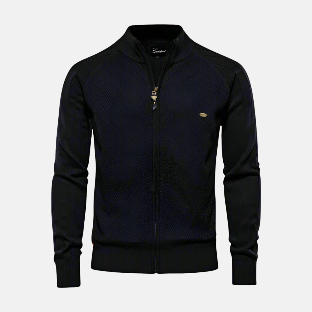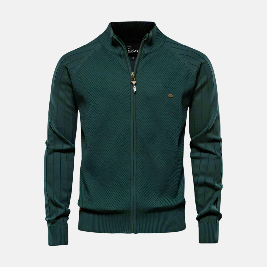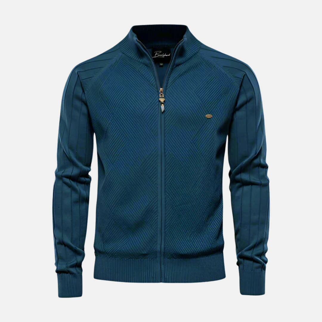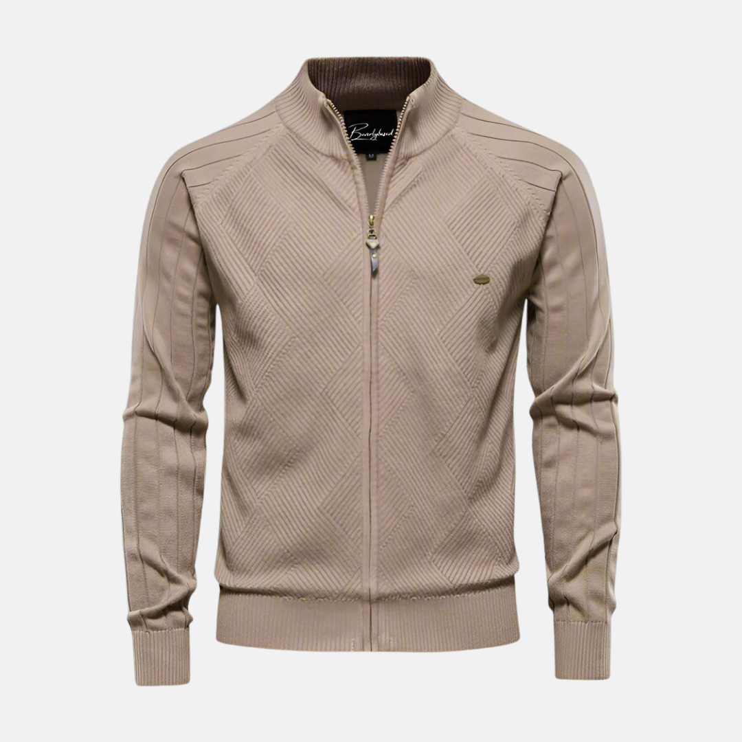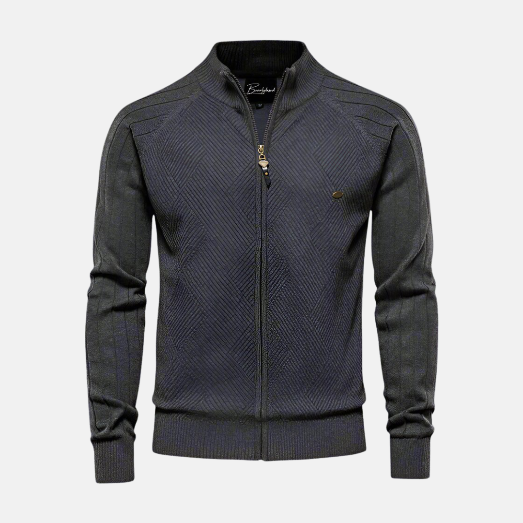 Upptäck den stickade herrjackan – Normal passform – Mjuk texturstickning – Hög krage – Dragkedja. Denna bekväma herrjacka med mjuk texturstickning, hög krage och dragkedja erbjuder tidlös stil och värme. Perfekt för varje man som söker en mångsidig, stickad jacka i normal passform.