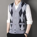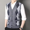 Verrijk je garderobe met het Amstel-Mode Heren Gebreid Vest Geruit in Wolmix met Knopen. Dit slim fit V-hals vest biedt comfort en stijl met een tijdloos geruit patroon en handige zakjes, perfect voor elke gelegenheid.