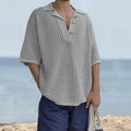 Heren gebreide trui – Open breisel – Oversized pasvorm – Notch revers – Korte mouw. Deze trendy gebreide trui combineert comfort met stijl. De oversized pasvorm, open breisel en unieke notch revers maken dit een echte must-have voor de moderne man. Perfect voor een relaxte en stijlvolle look.