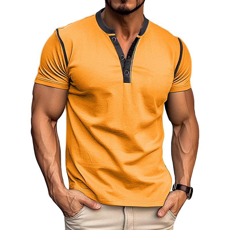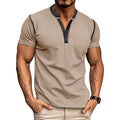 - Ontwerp: Henley stijl, korte mouwen, contrast trim en knoopsluiting