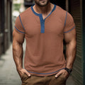 Ontdek het 'Heren Henley Shirt – Moderne Pasvorm – Katoen – Korte Mouwen – Contrasterende Details' van Amstel-Mode. Dit comfortabele shirt met ademende katoen en een moderne pasvorm accentueert uw figuur, ideaal voor casual gelegenheden. Stijlvol en veelzijdig.