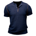 - Ontwerp: Slim fit, Henley halslijn, korte mouwen, getextureerd