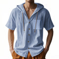 Heren Linnen Hoodie - Casual Zomer Overhemd met Korte Mouwen. Dit comfortabele Amstel-Mode linnenmix overhemd combineert de stijl van een hoodie met het gemak van een overhemd. Perfect voor een relaxte, maar stijlvolle look!