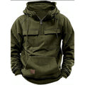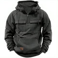 - Ontwerp: Oversized pasvorm, half-zip, borstzakken, buikzak, capuchon met trekkoord