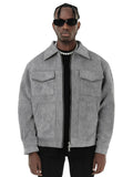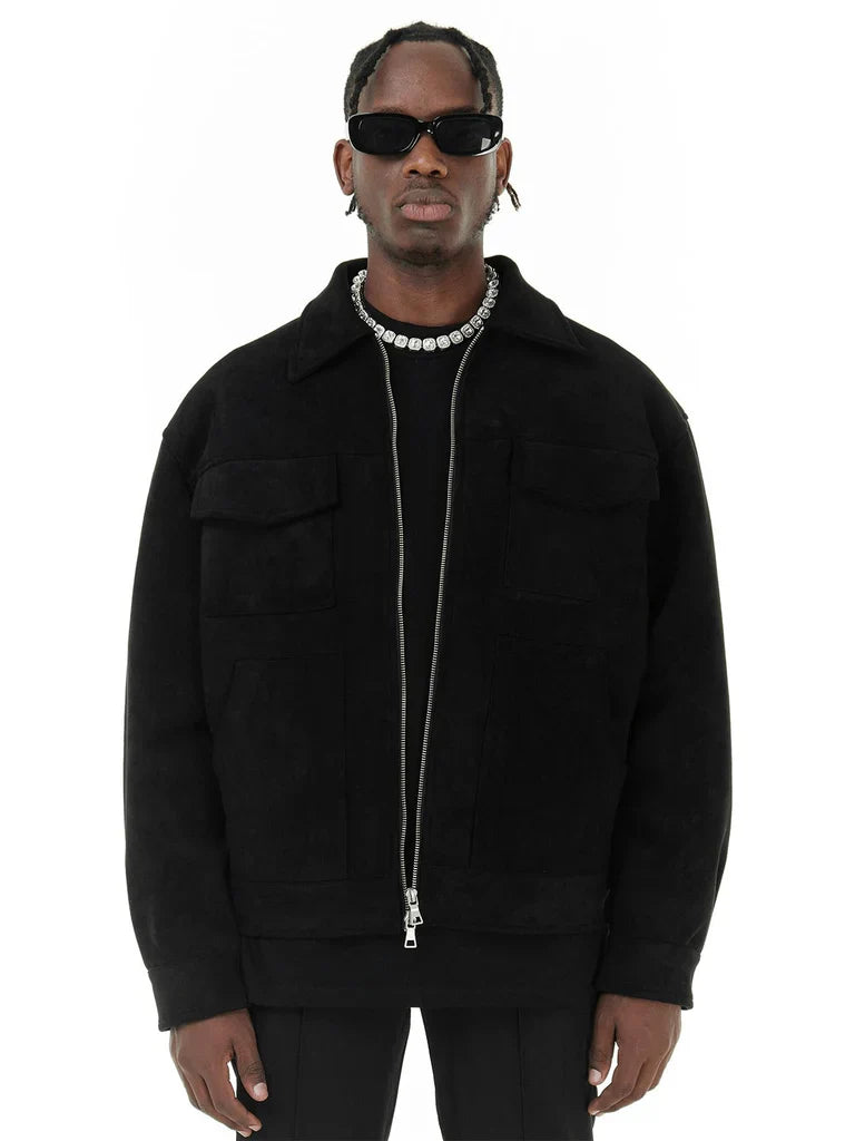Herr Jacka – Oversized Passform – Suedelook – Dragkedja – Bröstfickor Med Klaffar