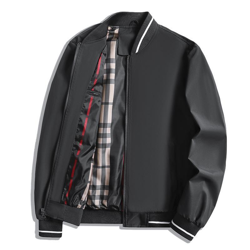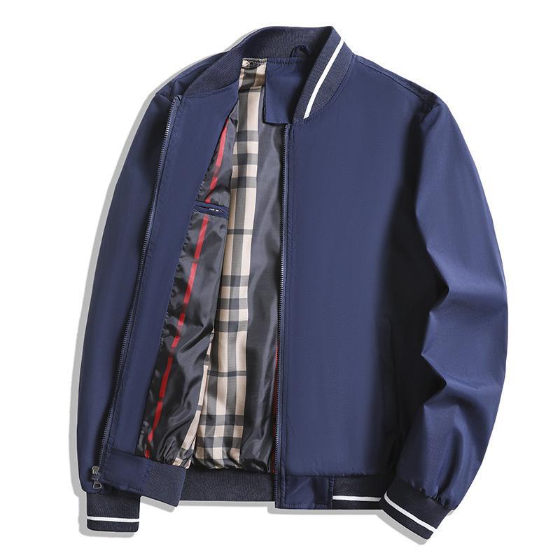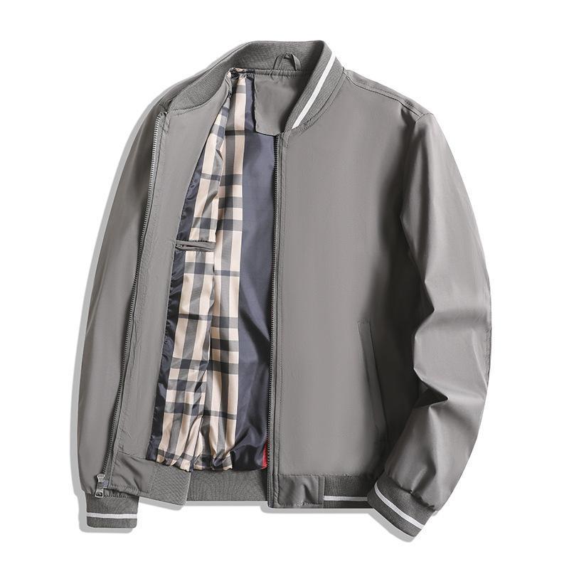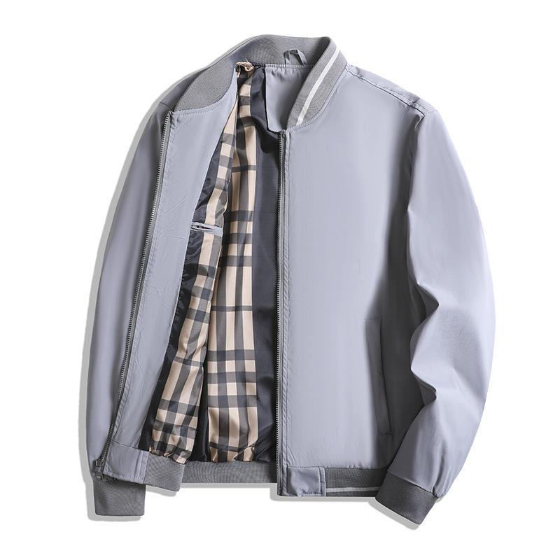 Herr Jacka – Rymlig Passform – Dragkedja – Ribbade Muddar – Rutmönstrat Foder Insida