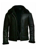 Herr Jacka – Slim Passform – Shearling Foder – Läderlook – Kort Längd – Aviatorstil