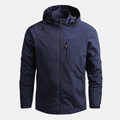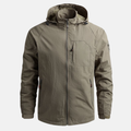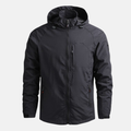 Denna herrjacka, tillverkad av en lättviktig vävd polyesterblandning, kännetecknas av en lös passform och en hög krage med huva. Idealisk för vardagligt bruk.