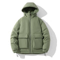 Deze heren jas is uitgevoerd in een oversized boxy pasvorm en gemaakt van een gladde, matte geweven polyester blend met gewatteerde isolatie, compleet met een capuchon met trekkoord.