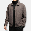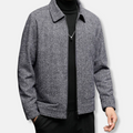 Deze herenjas, uitgevoerd in een geweven stof met subtiele melange, biedt een regular fit en valt op heuphoogte.