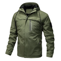 Deze heren jas, uitgevoerd in een geweven polyestermix, biedt een regular fit en valt tot op de taille. De capuchon is voorzien van een zachte fleece voering.