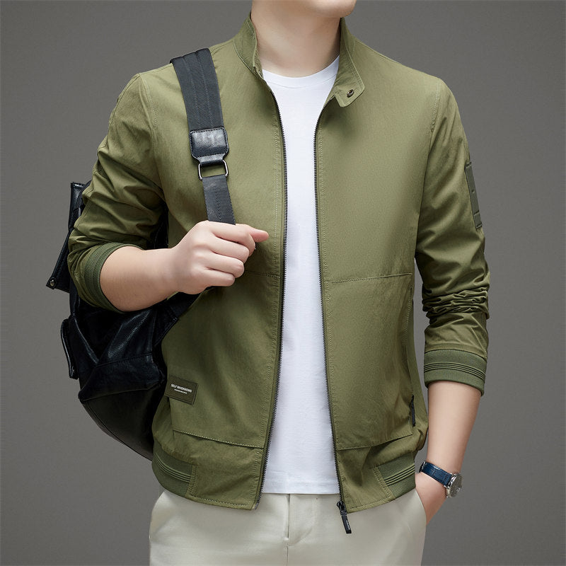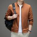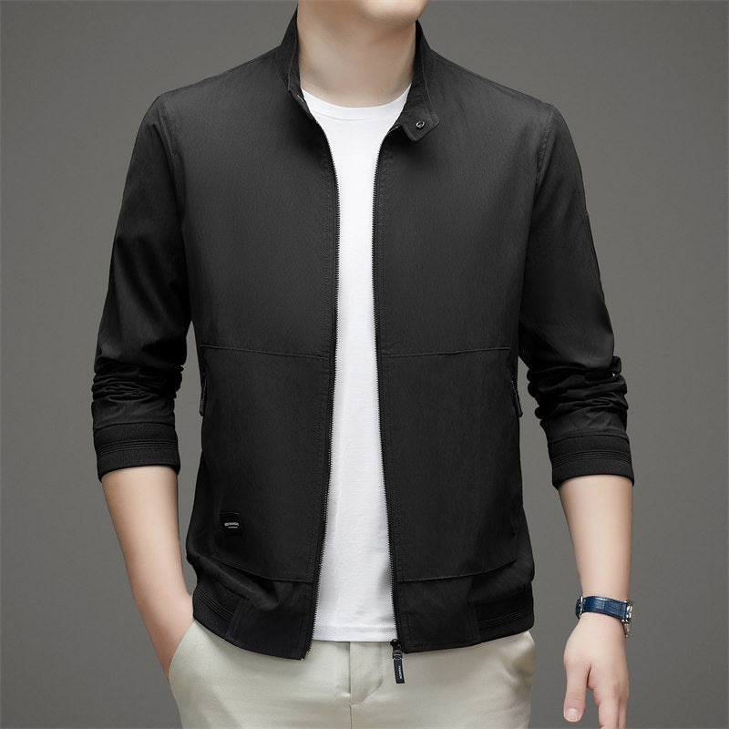 Herr Jacka – Normal Passform – Upprättstående Krage – Dragkedja – Ribbad Fåll – Avslappnad