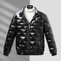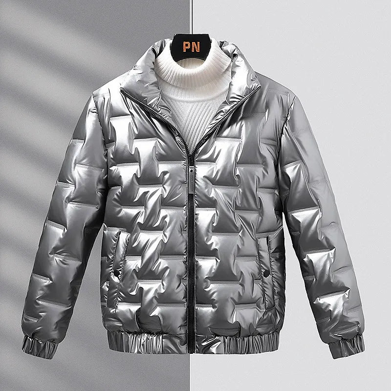 Herrjacka – Slim Passform – Glänsande Vadderad – Stående Krage – Casual Ytterjacka