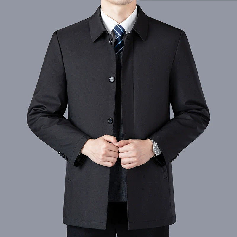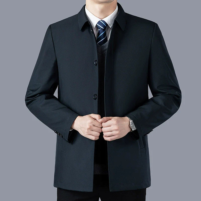 Herr Jacka – Skräddarsydd Passform – Mellan-Lång – Bomull – Revers Krage – Knappstängning