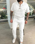 Herr Kort Kostymset – Slim Fit – Andningsbart Tyg – Dragsko Halsringning – Smart Casual