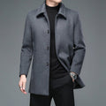 Herr Lång Rock – Slim Fit – Ullblandning – Enkelt Knäppt – Formell Stil