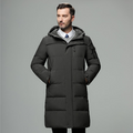 Deze lange pufferjas voor heren is vervaardigd uit een geweven stof en biedt een relaxte pasvorm. De jas is voorzien van een staande kraag met capuchon.