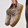 - Design: Klassisk låg modell med rund tå och snörning, formell stil med synliga sömmar och robust sula