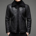 Herr Läderjacka – Figursydd Passform – Fleecekrage – Dragkedja – Höftlängd