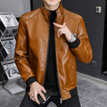 Herr läderjacka – Slim passform – Stående krage – Dragkedja – Ribbade muddar