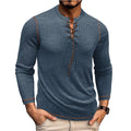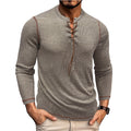 Herr Långärmad T-shirt – Slim Passform – Stickat Tyg – Snörning – Casual Stil