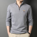 Herr Långärmad T-shirt – Slim Fit – Bomull – Halvdragkedja med Broderi