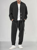 Herr Loungewear Set – Relaxad Passform – Schalkrage – Tapered Byxa – Mjuk Stickning