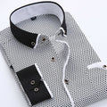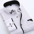 Herrskjorta – Klassisk Passform – Geometriskt Mönster – Kontrastkrage och Manschetter