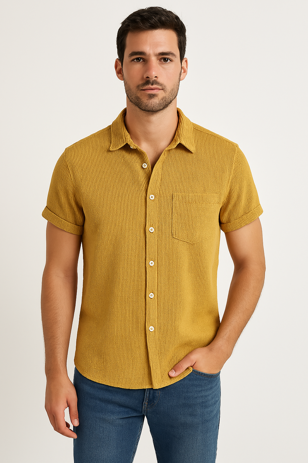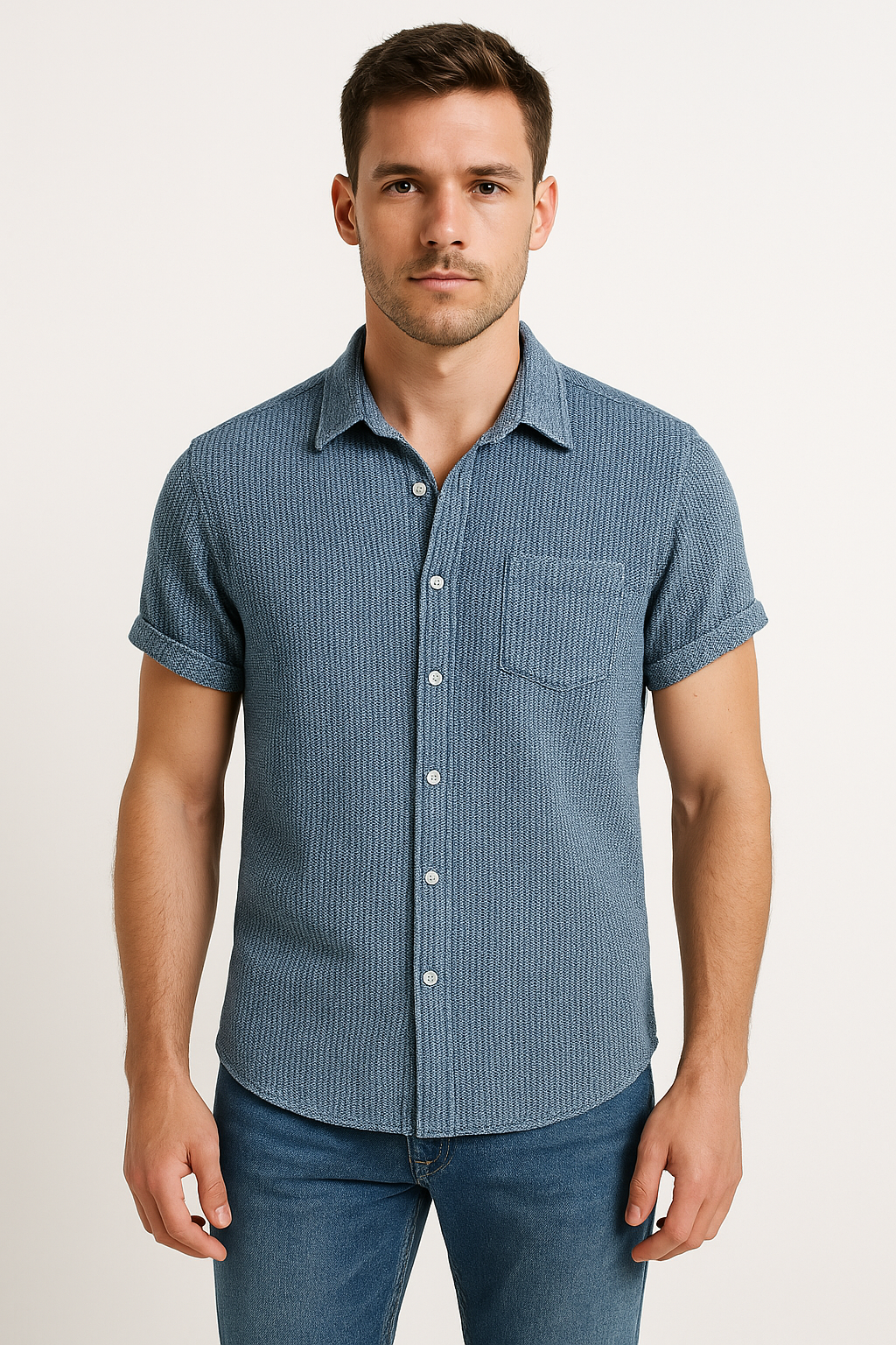 Använd skjortan öppen över en T-shirt för en avslappnad känsla, eller knäpp den för en mer uppklädd look. Kombinera med chinos eller jeans för en enkel stil.