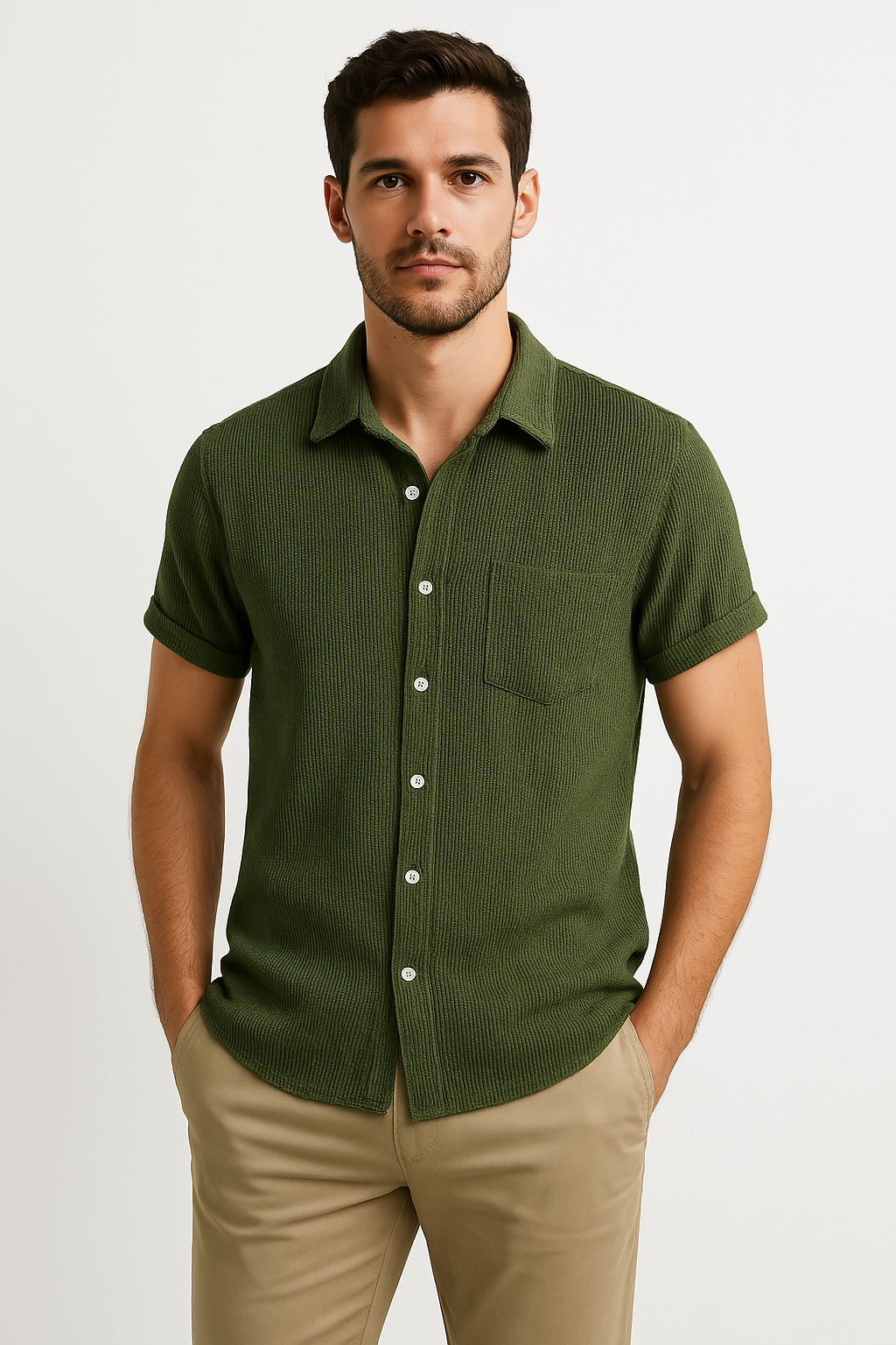 Herr Skjorta Kort Ärm – Manchester – Ledig Passform – Knäppning – Avslappnad Stil