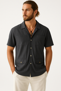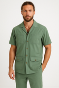 Herrskjorta Kort Ärm – Bomull Linne – Avslappnad Passform – Notch Krage – 4 Fickor