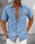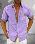 Herrskjorta Kort Ärm – Normal Passform – Andningsbart Material – Rutig Accent Avslappnad