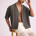 Herr Skjorta Kort Ärm – Relaxed Passform – Textur Vävd – Lätt Andningsbar