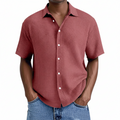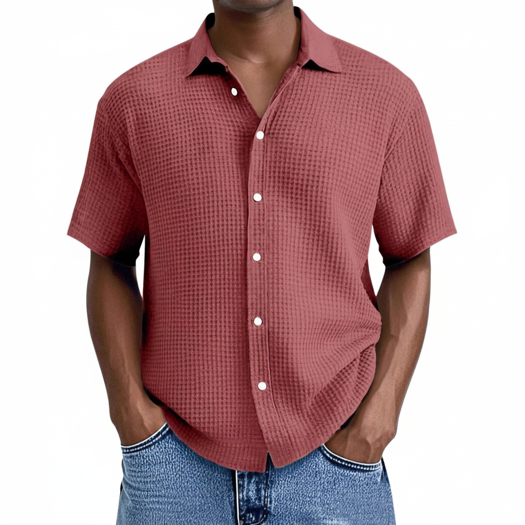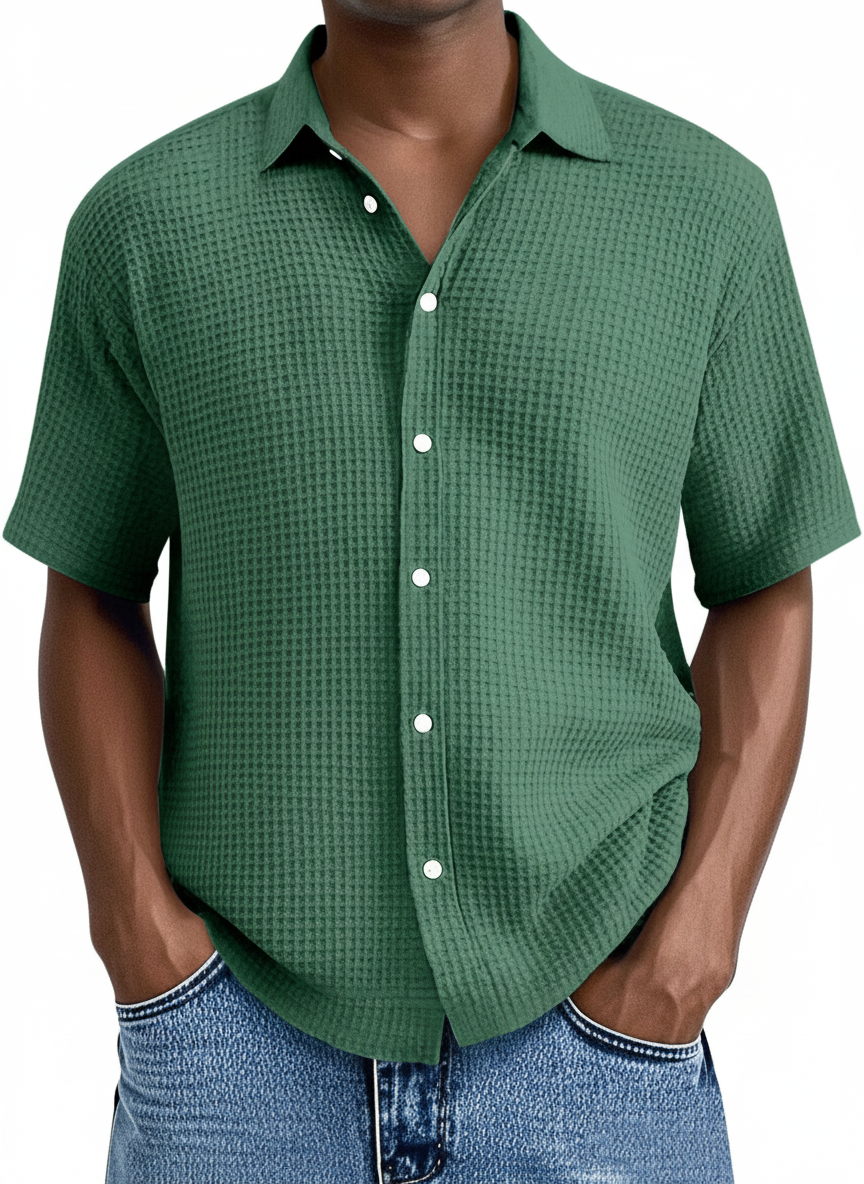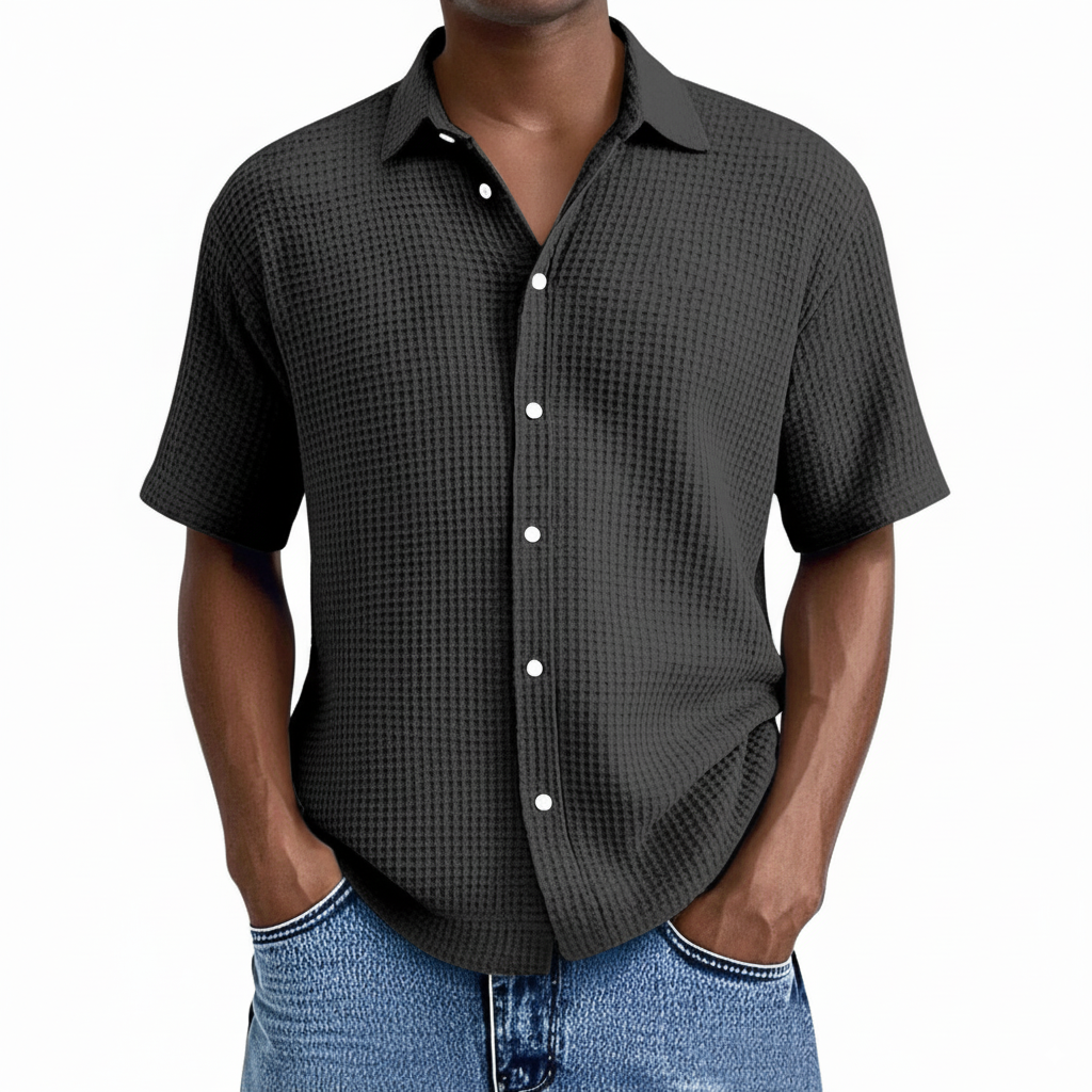 Herrskjorta Kort Ärm – Avslappnad Passform – Våffelstruktur – Andningsaktiv Mjuk Stickning